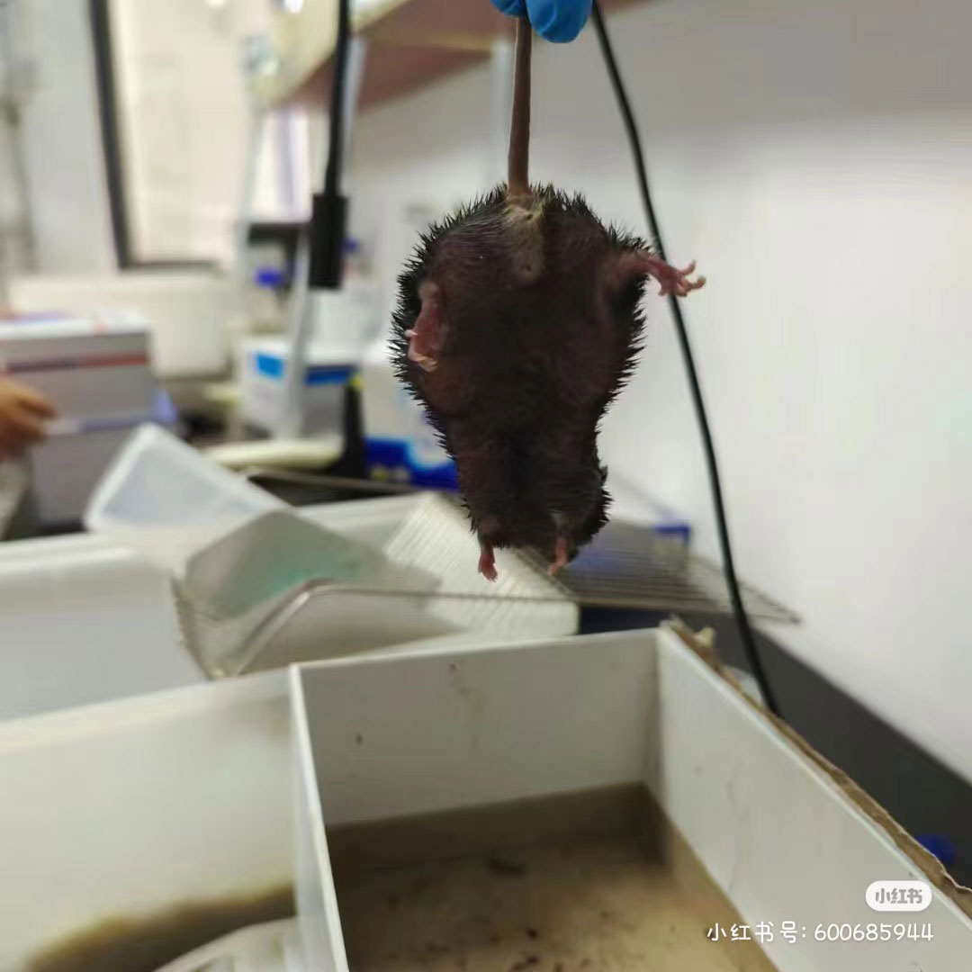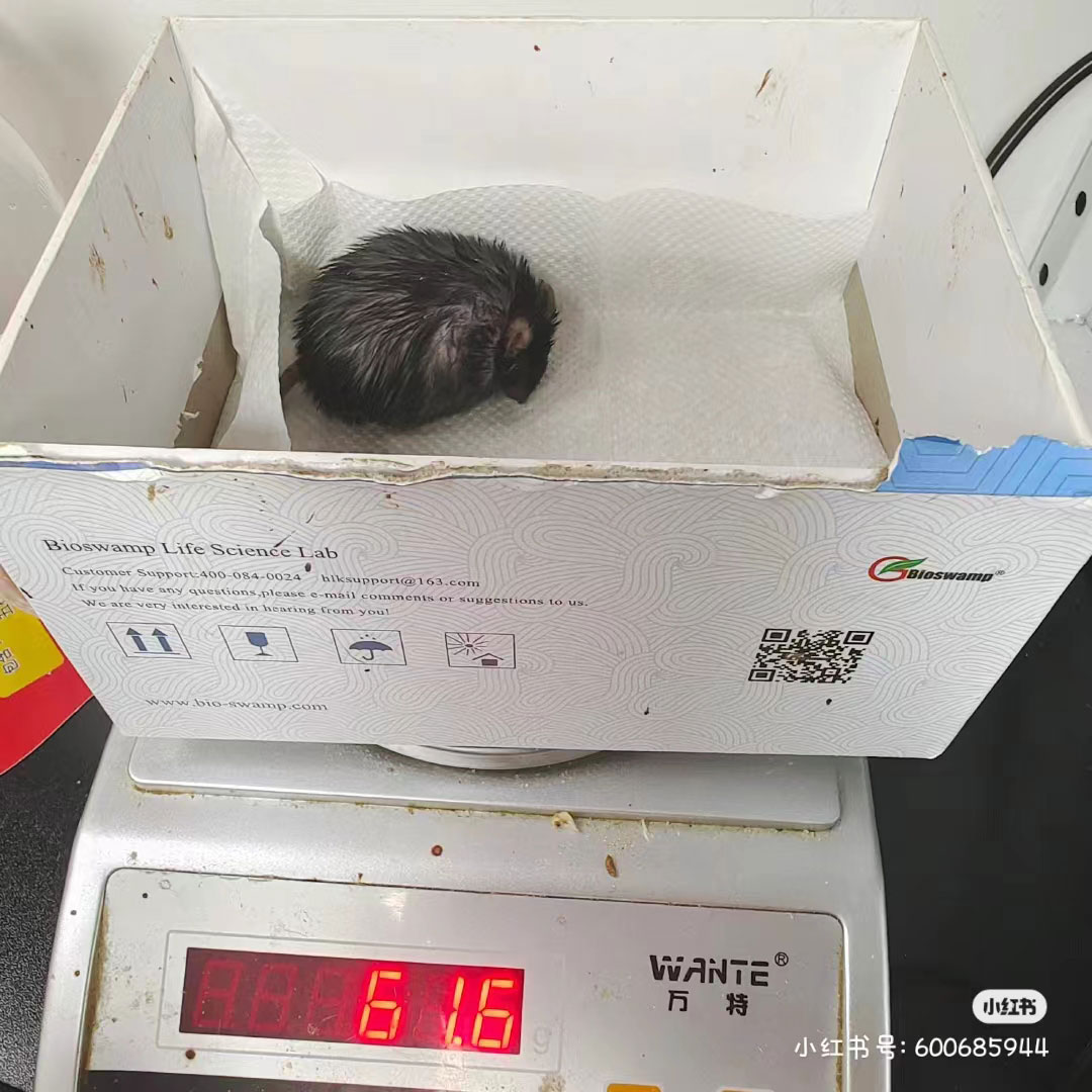 圖一圖二為高脂飼料喂養(yǎng)2周的小鼠情況;圖三圖四為高脂飼料喂養(yǎng)4周的小鼠情況;圖五圖六為小鼠過度肥胖后的身體狀態(tài)