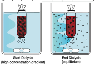 日期:2019-09-19 點擊:4039一、透析 透析就是應用小分子可以經過,而大分子不可以經過半透膜的原理,將大小分子量物質分開的一種實驗手腕;在膜兩側存在濃度差時,溶質從高濃度的一側(通常是樣品置于透析袋中)擴散經過半透膜到低濃度的一側(透析溶液一側)直至膜兩邊濃度到達均衡。如下圖所示: ...